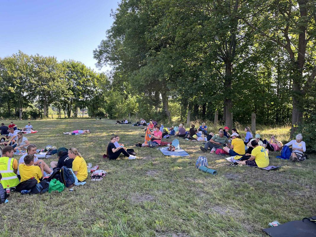 W sobotę pielgrzymi idą trasą Dzielna – Aleksandrów. Przed nimi dystans 35,4 km. Jako pierwsza wyruszyła grupa żółta – łochowska, która obecnie jest największą grupą pielgrzymkową.