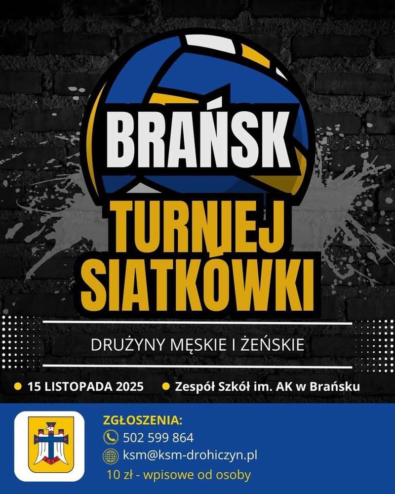 Diecezjalny Turniej w Piłkę Siatkową Katolickiego Stowarzyszenia Młodzieży Diecezji Drohiczyńskiej organizowany jest po raz 19. Turniej odbędzie się w Hali Sportowej w Brańsku, a jego organizację wspiera tamtejszy parafialny oddział KSM.