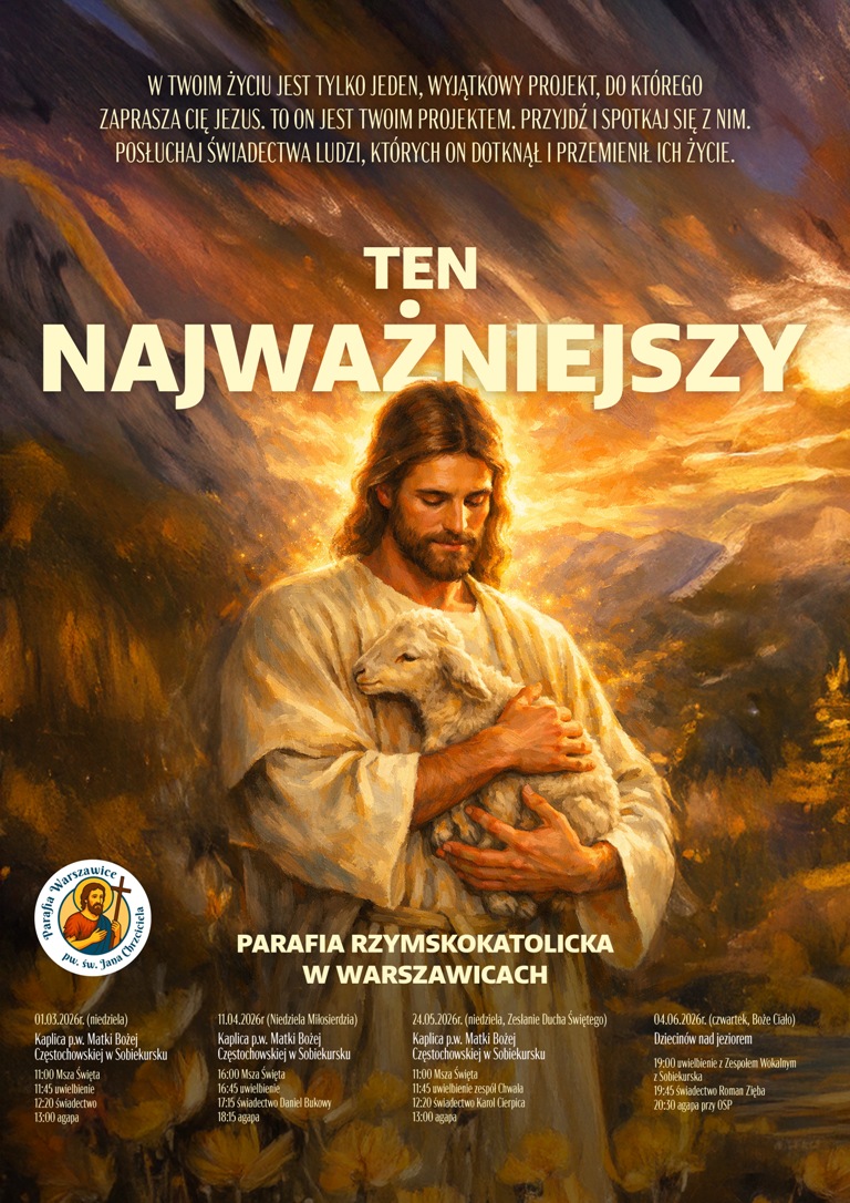 Historia i idea Projektu „Ten Najważniejszy”Projekt „Ten Najważniejszy” w Parafii Warszawice powstał z potrzeby serca dwóch osób, które zgodnie z ewangelicznym przesłaniem pragnęły nieść słowo Pana Boga do jak najszerszego grona odbiorców. Przełomowym momentem okazało się być Uwielbienie Młodych Serc zorganizowane wraz z zespołem pielgrzymkowym w czerwcu 2025 r. Owocem tego spotkania były m.in. kolejne osoby zgłaszające chęć zaangażowania się w rozwój tej formy modlitwy w parafii. W listopadzie ubiegłego roku odbyło się pierwsze spotkanie organizacyjne, w którym uczestniczyło sześć osób. Jedną z intencji modlitwy była prośba o powstanie zespołu muzycznego. Wkrótce zaczęli zgłaszać się kolejni chętni.