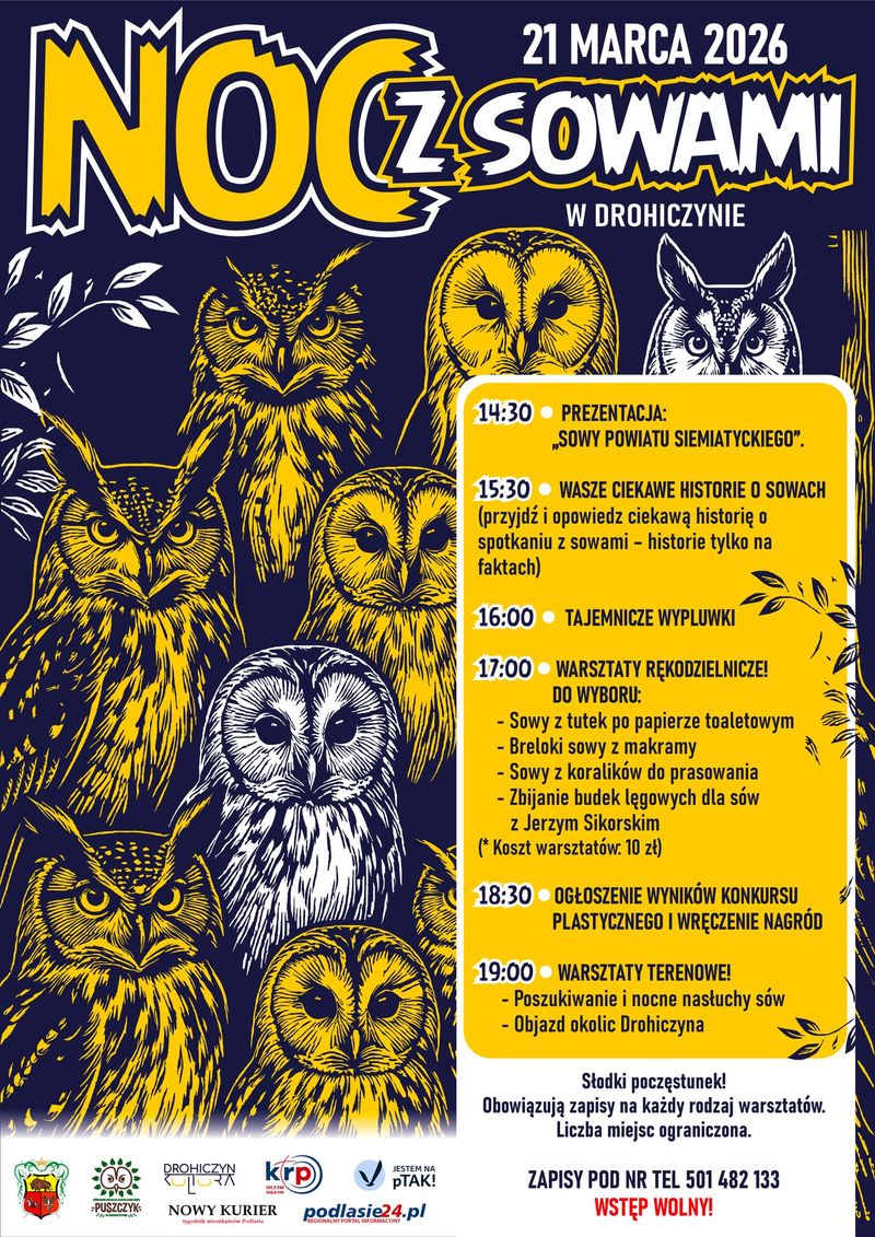 Koszt warsztatów to symboliczne 10 zł. Cała kwota zostanie przeznaczona na pomoc sowom z terenu gminy Drohiczyn – czyli na „zapewnienie dachu nad głową”. Obowiązują zapisy na każdy rodzaj warsztatów, a liczba miejsc jest ograniczona. Zapisy pod nr tel. 501 482 133.