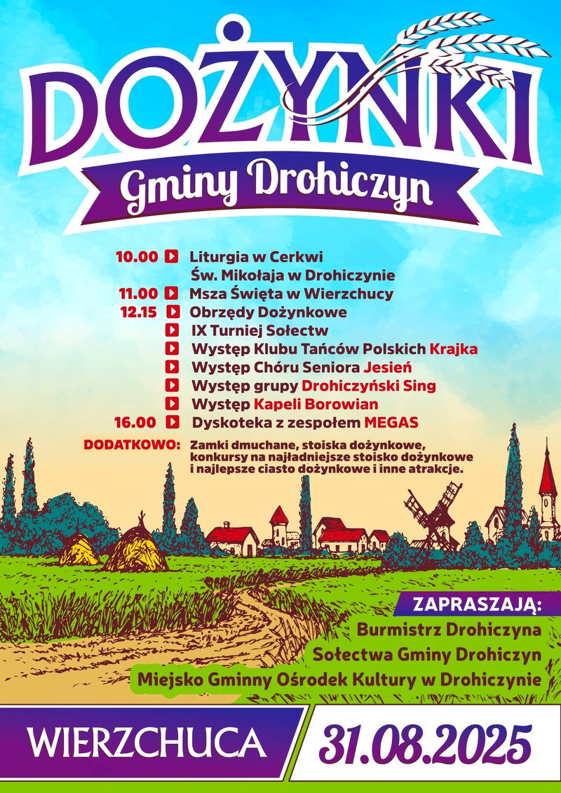 Dożynki Gminy Drohiczyn 2025 odbędą się w Wierzchucy w niedzielę 31 sierpnia.