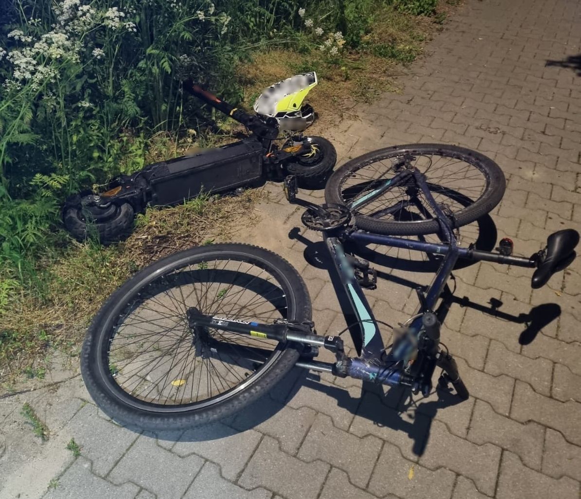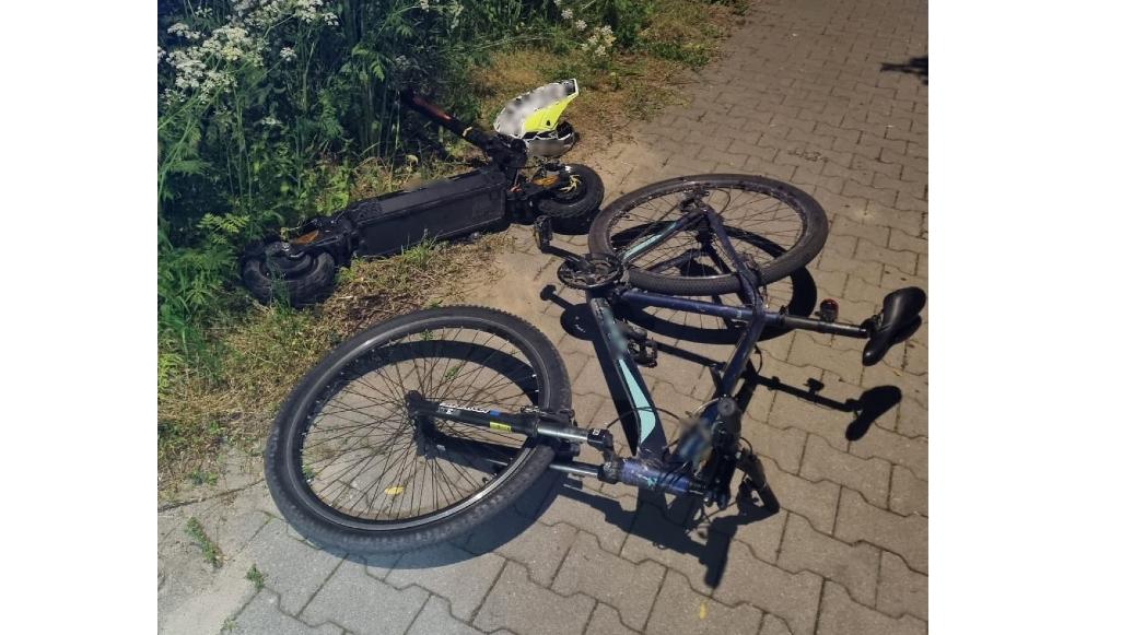 Czołowe zderzenie hulajnogi i roweru