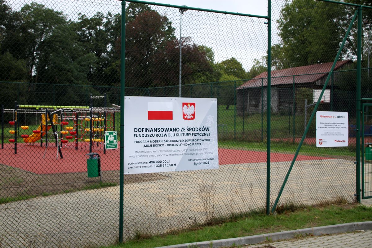 Orlik przy szkole w Miastkowie Kościelnym cieszy się od dawna dużą popularnością. Jednak po wielu latach intensywnego użytkowania wymagał modernizacji, aby móc dalej sprostać oczekiwaniom i spełniać swoją rolę. - Widać było ten ząb czasu na tych obiektach, dlatego zdecydowaliśmy się na złożenie wniosku do Ministerstwa Sportu i Turystyki, w ramach Funduszu Rozwoju Kultury Fizyczne. Dostaliśmy dotację w kwocie 496 tys. zł. Złożyliśmy też wniosek do Urzędu Marszałkowskiego i również dostaliśmy dotację w kwocie 200 tys. zł. W sumie 696 tys. zł. Do tego dołożyliśmy ponad 600 tys. zł własnych środków. Za ogólną kwotę 1 335 000 zł przeprowadziliśmy gruntowny remont Orlika – mówi wójt Jerzy Jaroń.W ramach zadania wymieniona została nawierzchnia trawiasta i wyposażenie boiska. Rozebrano szatnie, a w ich miejsce powstała nowa infrastruktura: aktywna strefa rekreacji, czyli plac zabaw dla starszych dzieci. Wykonano utwardzenia i inne prace, o czym Waldemarowi Jaroniowi mówi wójt Jerzy Jaroń.