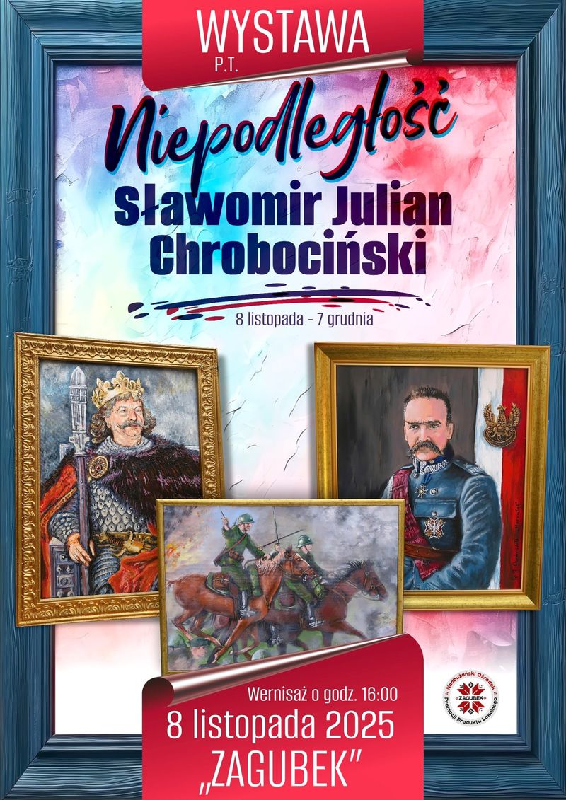Już w sobotę, 8 listopada o godz. 16:00 w Zagubku odbędzie się wernisaż wystawy „Niepodległość” Sławomira Juliana Chrobocińskiego. Wystawę o tematyce patriotycznej, pełną emocji i artystycznego przekazu, można będzie podziwiać do 7 grudnia w godzinach pracy Zagubka.W poniedziałek, 10 listopada, gmina Drohiczyn wraz z ośrodkiem kultury i Stowarzyszeniem „Kocham Polskę” przygotowała następujący program: