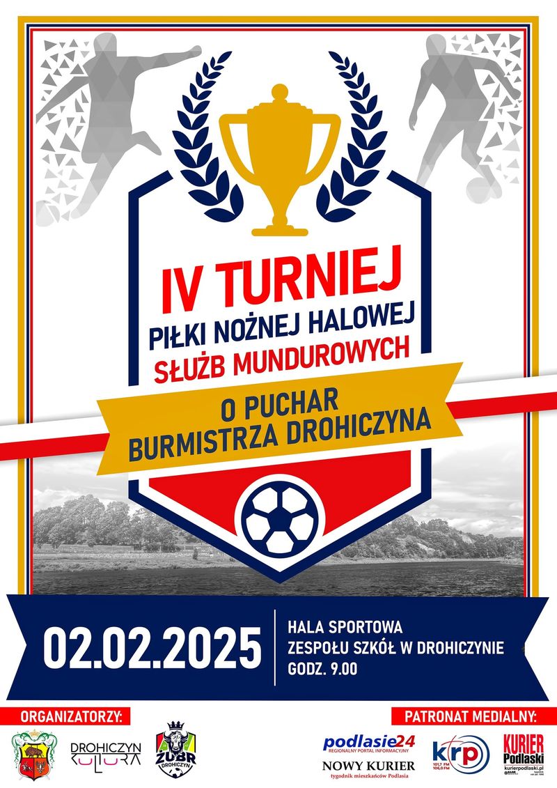 Po raz czwarty w Drohiczynie odbędzie się Turniej Piłki Nożnej Halowej Służb Mundurowych „O Puchar Burmistrza Drohiczyna”. Do udziału zaproszono strażaków, policjantów, żołnierzy.